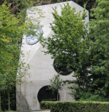 Im westlichen Hunsrück ist inmitten von Bäumen ein Erweiterungsbau zur KZ-Gedenkstätte Hinzert entstanden. Mit der fraktalen Skulptur aus Liapor-Leichtbeton gelang den Architekten eine Symbiose aus Innovation und Nachhaltigkeit. Die Leichtbeton-Bauweise folgt der Intention der Bauherrin nach einer dauerhaften und innovativen Materialität.