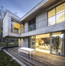 Beim Bau eines Einfamilienhauses in Kleinmachnow setzten Baumgarten Simon Architekten bewusst auf eine Gebäudehülle aus Liapor-Infraleichtbeton – ein Baustoff, der Gegensätze vereint: massiv und doch leicht, geschlossen und dennoch offen. Neben seiner besonderen Ästhetik überzeugt er hier auch unter Nachhaltigkeitsaspekten – mit Energieeffizienz, Langlebigkeit, Ressourcenschonung und Wiederverwertbarkeit.