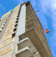 Die neuen Balkonplatten an der „Scheibe C“ in Halle bestehen ab dem 8. Stock aufwärts aus Liapor-Leichtbeton. Der leichte Baustoff sorgt für statische Sicherheit und ermöglichte zusätzlich den Einbau mit Betonpumpe.