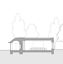Eines der prägendsten Elemente des Seminargebäudes auf dem Areal der Gedenkstätte „Haus der Wannsee-Konferenz“ in Berlin ist zweifellos das gewellte, weit ausschwingende Vordach. Wie die übrige Gebäudehülle besteht es aus Liapor-Leichtbeton. Und trotz seiner Mächtigkeit von bis zu einem Meter strahlt es eine dezente, subtile Dynamik aus. „Der Schwung des Daches vermittelt zwischen Haupthaus und Neubau, verleiht diesem aber auch sein unverwechselbares Gesicht. Gleichzeitig lässt es das Gebäude optisch niedriger wirken“, erklärt Thomas Eysholdt von Staab Architekten, die 2015 den Wettbewerb mit dem Entwurf des eigenständigen, rund 425 Quadratmeter großen einstöckigen Neubaus gewannen. Neben dem Dach wurde auch ein Großteil der Außenwände mit Liapor-Leichtbeton errichtet, und zwar in 60 Zentimetern Stärke.