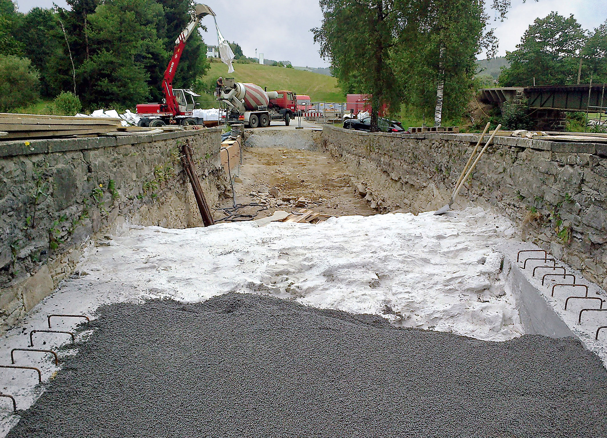 Neuer Brückenkern aus 140 m³ Liapor-Schüttung