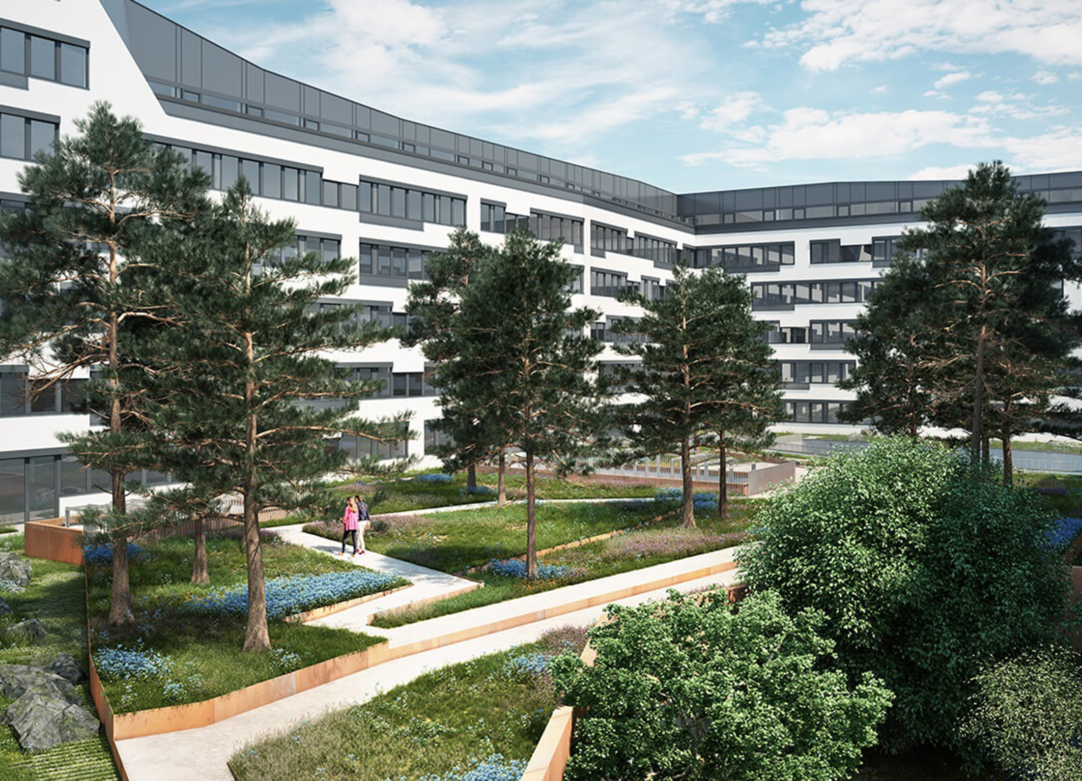 Ende 2018 soll es fertig sein, das zurzeit größte in Bau befindliche Business-Center Europas. Bis dahin herrscht mit bis zu 2.200 Bauarbeitern und 19 Kränen noch Hochbetrieb auf der Baustelle auf dem ehemaligen Nordbahnhofsareal im zweiten Wiener Bezirk. Klar ersichtlich sind bei dem Großprojekt, das unter der Bauherrschaft der Signa Real Estate Management GmbH errichtet wird, aber schon die fünf separaten Baukörper mit insgesamt über 300.000 Quadratmetern Bruttogeschossfläche. Vier Gebäude sind so konzipiert, dass sie beträchtliche Freiflächen umschließen und damit großzügige Innenhöfe aufweisen. Diese sollen nach dem Vorbild des nahen Wiener Waldes mit den dort typischen Laub- und Nadelbäumen, Sträuchern und Gehölzen begrünt werden. Die Idee dabei ist es, so den umgebenden Naturraum quasi als Landschaftsimplantat in den Austria Campus hineinzuholen. Gleichzeitig wird über die Innenhöfe auch das Grün des Praters bis zur Donau hin verlängert und erlebbar gemacht. Der zugrunde liegende Freiraumentwurf stammt von der Düsseldorfer Land Germany GmbH.