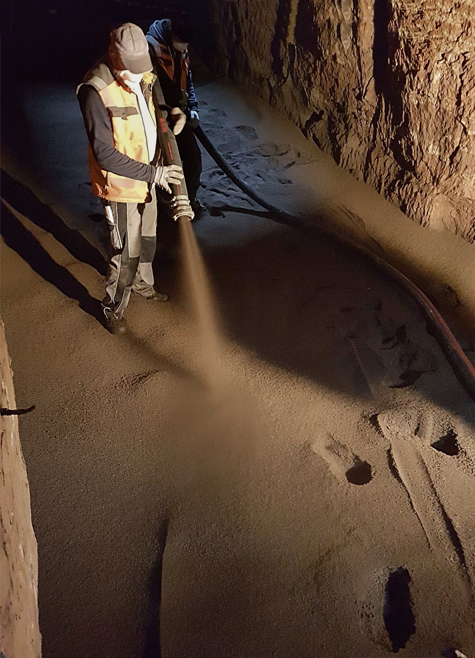 In Annweiler erfolgte der Eintrag des Liapor-Blähtongranulats im Februar 2017. Die Verfüllung erfolgte dabei besonders einfach und wirtschaftlich direkt vom Silo-Lkw aus über Schlauchleitungen. Damit ließ sich das Material innerhalb weniger Tage besonders schnell und staubfrei einbringen, und zwar wie gefordert bis zur Decke auch in den hintersten Gewölbeteilen. Die beiden übrigen Gewölbekeller blieben dagegen erhalten. „Eine begehbare Tunnelröhre aus Stahlbeton ermöglicht künftig sogar den Zugang zu zwei der fünf Gewölbe, die zuvor nicht betreten werden konnten“, erklärt Reiner Paul, Leiter der Annweiler Stadtwerke. „Gleichzeitig bleibt so auch der Lebensraum für die dort ansässigen Fledermäuse gewahrt.“