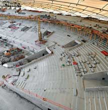 DIe Mercedes-Benz Arena in Stuttgart wird bis Ende 2011 bei laufendem Spielbetrieb zu einem reinen Fußballstadion umgebaut.