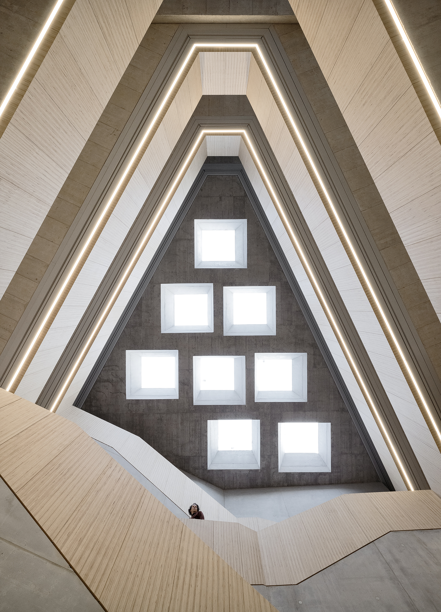 Das offen und licht wirkende Innere des Rathauses ist für Begegnung und Kommunikation konzipiert und lädt ein zum Erkunden und Entdecken.