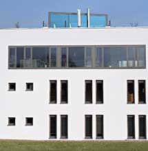 Dank der rund 245 Kubikmeter verwendeten Liapor Super-K-Plan Mauersteine konnte der Rohbau innerhalb von nur drei Monaten im November 2010 fertiggestellt werden. Heute präsentiert sich das Objekt mit seiner an die Nachbargebäude angelehnten Fassadengestaltung als gelungen ins Umfeld integriert, aber dennoch eigenständig. Die Verbindung und gleichzeitige Abtrennung zum nahen Maschinenhaus symbolisiert dabei auch das gläserne Treppenhaus zwischen den Gebäuden, das wie der Glaskubus auf der Dachterrasse zusätzliche Offenheit ausstrahlt. Damit ist ein ganz eigenes, charakterstarkes Objekt entstanden, das ein Höchstmaß an Ästhetik und Funktionalität bietet, gleichzeitig als innovative Fortführung das bestehende Industriedenkmal neu belebt und so ein Stück Augsburger Industriegeschichte ganz neu weiterführt.
