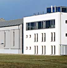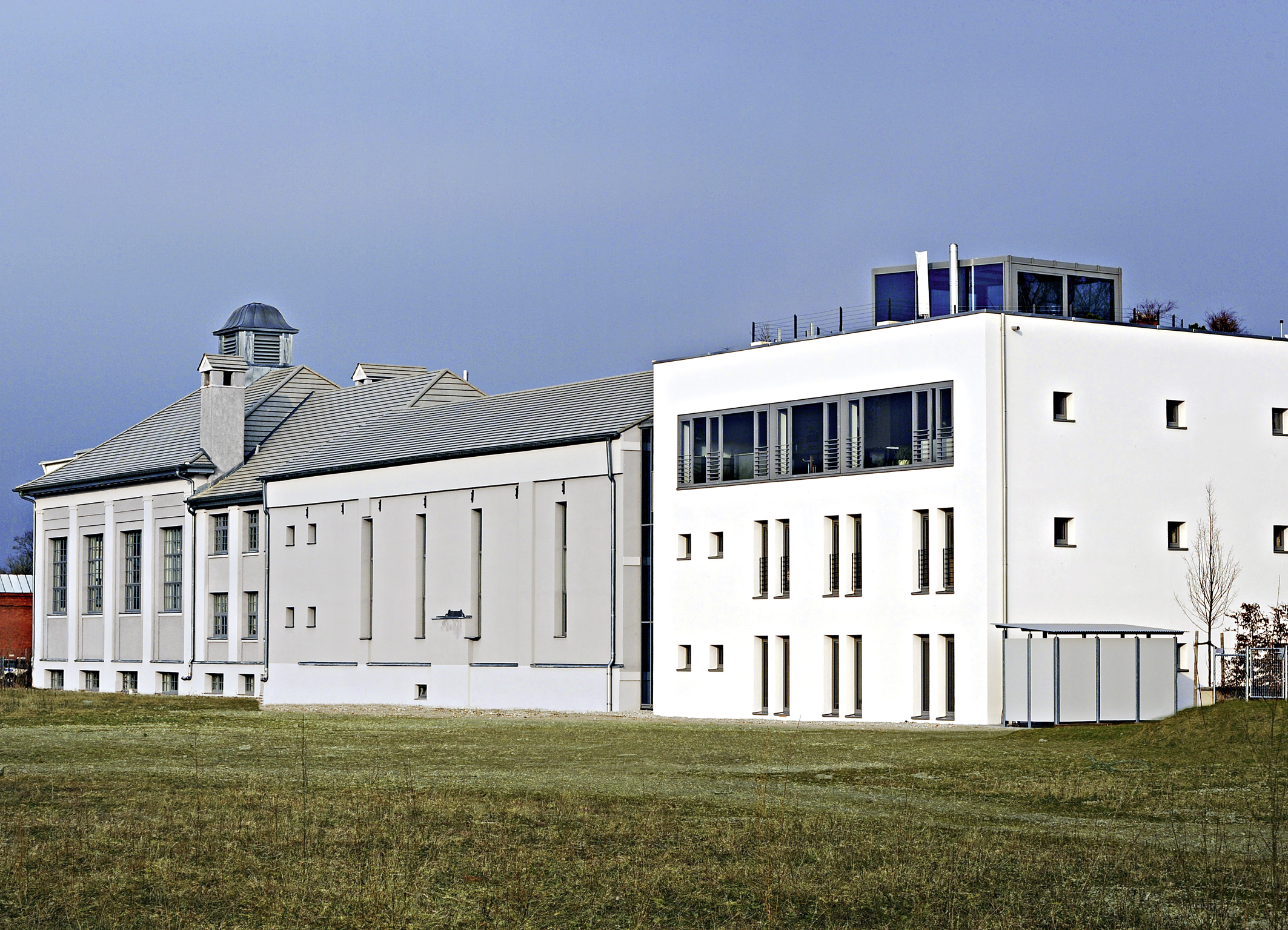 Das Objekt wurde unter privater Bauherrschaft konzipiert und umgesetzt von Architekt Paulus Eckerle aus Titting, die Ausführung übernahm die Hafner Wohnbau GmbH in Bobingen. Die Herausforderung beim Bau des Hauses lag darin, einerseits die Architektur des historischen Umfelds, andererseits aber auch die Anforderungen an zeitgemäßes Arbeiten und Wohnen zu erfüllen. "Es sollte von Maßstab und Kubatur her ein Objekt entstehen, das in harmonischer Relation zu den angrenzenden Industriedenk-mälern steht und deren Architektur behutsam weiterführt", erklärt Architekt Paulus Eckerle. "Gleichzeitig musste eine Bauweise gefunden werden, die alle Vorgaben bezüglich Wärmedämmung, Schallschutz, Raumklima sowie einen schnellen Baufortschritt erfüllte."