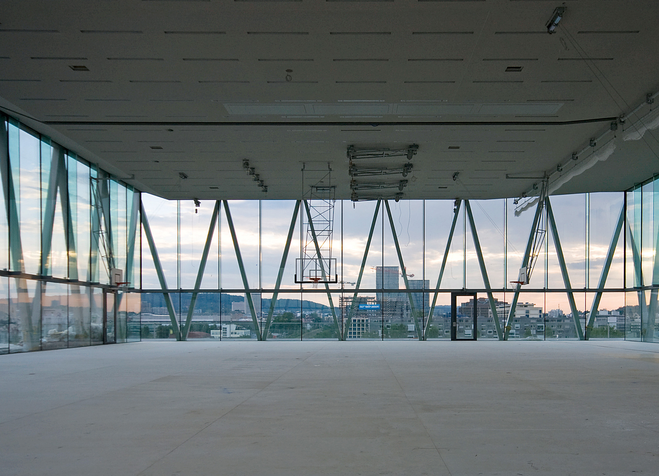 Highlight auf dem Dach: Die stützenfreie Doppelturnhalle im fünften Stock.
