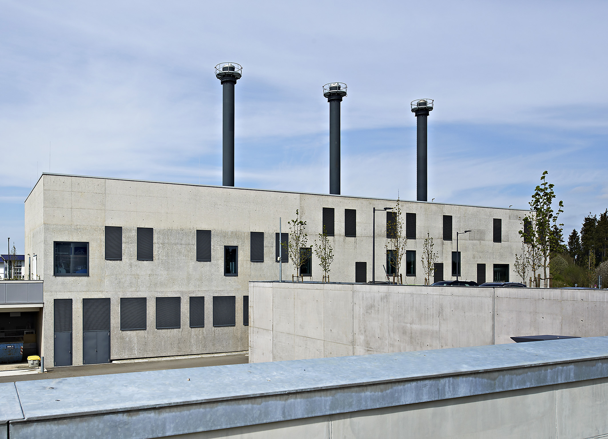 Die Entscheidung für den verwendeten Liapor-Leichtbeton fiel aus mehreren Gründen: "Mit der Ausführung in Sichtbetonoptik ließ sich die Energiezentrale wie gewünscht architektonisch-gestalterisch vom Gesamtensemble absetzen", erklärt Architekt Wolfgang Vögele. "Gleichzeitig stellte der einschalige Wandaufbau auch die wirtschaftlichste Lösung im Vergleich etwa zu mehrschaligen Konstruktionen dar. Und nicht zuletzt bieten die 60 Zentimeter starken Außenwände die nötige Energieeffizienz und unterbinden beispielsweise die Tauwasserbildung im Gebäude."