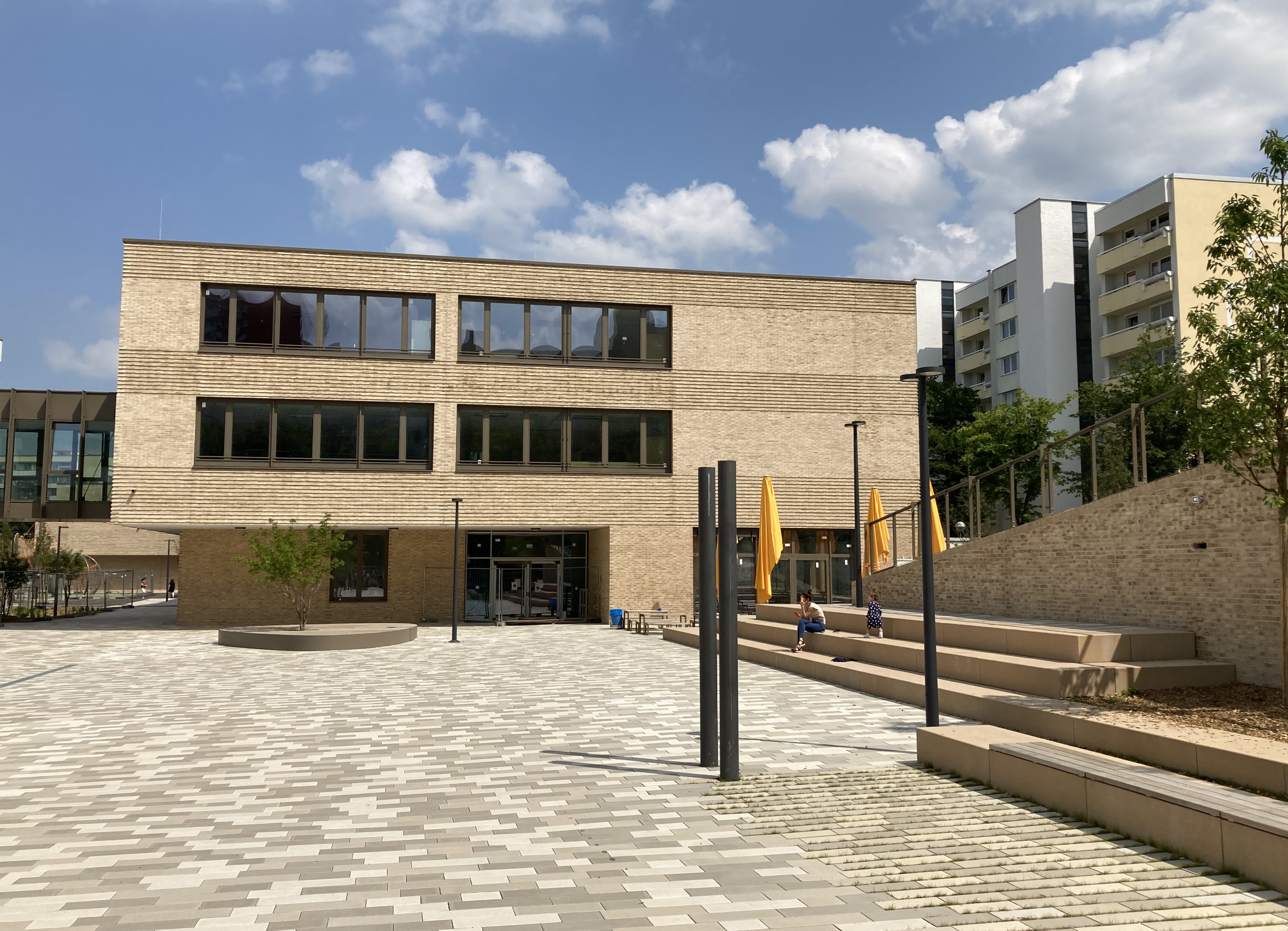 Von Pünktlich zu Schulbeginn wurde im September 2021 der neue, gut 10.000 Quadratmeter große Erweiterungsbau an der Grundschule Haar am Jagdfeldring im Osten Münchens in Betrieb genommen. Das vom Büro Bär, Stadelmann, Stöcker Architekten und Stadtplaner PartGmbB in Nürnberg konzipierte Gebäude wurde nach rund zweijähriger Bauzeit fertiggestellt und umfasst 16 Klassenzimmer sowie eine Mensa, eine kleine Bibliothek, eine Sporthalle und eine Tiefgarage. Der Bau schließt über einen Verbindungsgang im Keller und ersten Obergeschoss an die südliche Stirnseite des Bestandsschulgebäudes an. Besonderes Augenmerk lag bei der Projektumsetzung auf den Freiflächen vor dem Erweiterungsbau, unter denen sich die Decken der Kellerräume und der Tiefgarage befinden: „Auf diesen Flächen sollte mit Beton ein Gefälle für die Abdichtung der erdüberdeckten Bereiche modelliert werden, um dort stehendes Wasser zu vermeiden. Gleichzeitig sollte der Gefällebeton auch durchgängig begeh- und befahrbar sein. Und nicht zuletzt durfte der Gefälleaufbau nicht zu schwer sein, damit die unterlagernden Decken nicht statisch übermäßig belastet werden“, erklärt Andreas Danneil, Bauleiter der Dipl.-Ing. Emil Hönninger GmbH & Co. Bauunternehmung KG. Das in Kirchseeon beheimatete Unternehmen übernahm im Auftrag der Gemeinde Haar die Ausführung der Baumeisterarbeiten für den Erweiterungsbau inklusive der Gefällemodelierung davor.