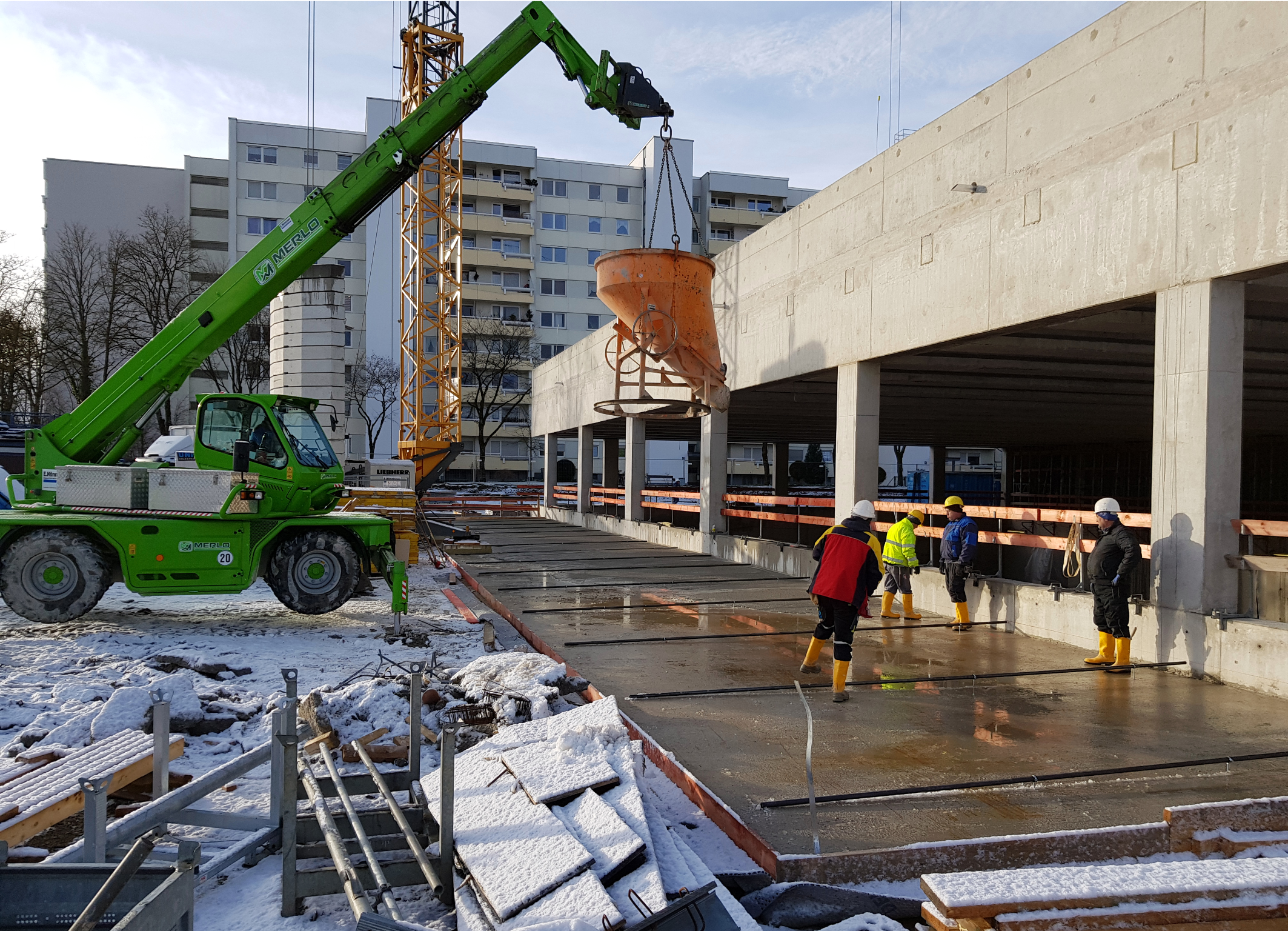 Unter den Freiflächen sorgt der Liapor-Gefällebeton für einen besonders leichten und hochfesten Gesamtaufbau.