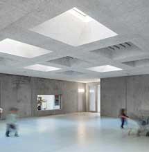 "Die massive Konstruktion ist als einfacher, eigenständiger Quader konzipiert und beinhaltet nur wenige Materialien und zurückhaltende Farben", erklärt Simon Davis vom Architekturbüro Bruno Fioretti Marquez, der zusammen mit Judith Mampe das Projekt "KinderUniversum" leitete. "Die Ausführung in Sichtbeton passt ideal zur monolithischen Bauweise und sorgt für das gewünschte schlichte, aber dennoch raue Erscheinungsbild. Gleichzeitig ließen sich mit dem Liapor-Dämmbeton auch alle statisch-bauphysikalischen Anforderungen sowie die Vorgaben gemäß EnEV 2009 erfolgreich umsetzen."