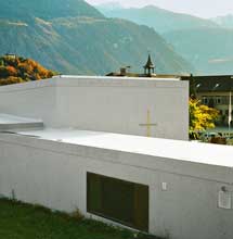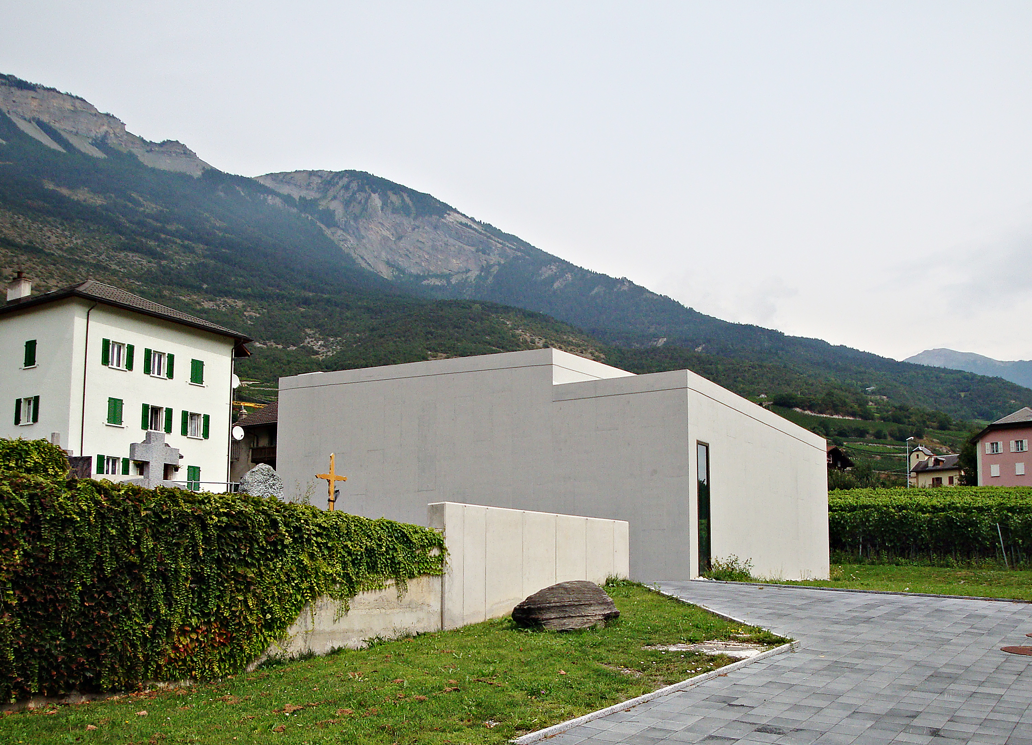 Mitten in den Walliser Alpen liegt der kleine Ort Salgesch, rund 20 Kilometer nordöstlich von Sion. Zum Bild der im 13. Jahrhundert gegründeten Ortschaft gehört auch der kleine Friedhof mit seiner historischen Kirche. Direkt daneben entstand vor Kurzem eine neue Friedhofskapelle, die als monolithisches Bauwerk in Sichtbeton-Optik einen ganz besonderen Akzent im ansonsten historischen Ambiente setzt. Entworfen wurde das kubistisch anmutende, in sich geschlossene Objekt von Architekt Norbert Truffer von der Cometti Truffer Architekten AG in Luzern unter der Bauherrschaft der Stiftung Friedhofskapelle und Pfarrei Salgesch.