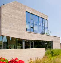 Seit Kurzem steht in Erftstadt bei Köln ein modernes, dreigeschossiges Objekt in Sichtbetonoptik, das mit seinen Glas- und Betonflächen Ruhe und Klarheit ausstrahlt, gleichzeitig einen neuen, eindrucksvollen Akzent im Stadtbild setzt. Vorausgegangen war ein Architekturwettbewerb, zu dessen Sieger die Jury das Kölner Architektenbüro raumwerk.architekten kürte. "Wir wollten einen monolithisch wirkenden, skulpturalen Bau schaffen, der an die Schlichtheit des Bonner Tores anknüpft und auch im Kontext zum vorhandenen Grün- und Wohnumfeld steht", erklärt Architekt Marc Hübert. "Mit seinen Beton- und Glasflächen schafft das Objekt einen schlichten, zugleich optisch markanten Ruhepunkt, der auch einen repräsentativen Charakter für die Stadt bildet."