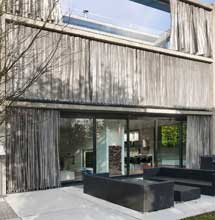 Bei der Villa Funken kamen rund 150 Kubikmeter LC12/13 D1.2 nach DIN 1045-2 zum Einsatz. Er besteht aus einem bestimmten Liaporsand 0-4 mm und Liaporkörnung 4-8 mm, CEM I 42,5 R, Stabilisierer, Fließmittel und Luftporenbildner. Die Rezeptur wurde von der Dyckerhoff Beton GmbH & Co. KG in Zusammenarbeit mit Liapor entwickelt. "Der helle, leichte Leichtbeton ergibt zusammen mit der Gebäudeausformung und den gestockten Sichtbetonflächen eine warme, ansprechende Gesamtkomposition", so Architekt Artis Paas. Struktur, Farbigkeit und Materialität der Leichtbetonwände ergänzen sich auch perfekt mit den silberfarbenen Vorhängen aus flexiblen Stahlblechen, die vor Fenstern und Türen neben Sichtschutz auch für Sonnenschutz sorgen. Das Objekt zeigt, wie sich mittels Liapor-Leichtbeton auch moderne Bauvorhaben in außergewöhnlicher Architektursprache praktisch umsetzen lassen und dabei ein Höchstmaß an Wohnkomfort gewährleisten, aber auch alle Vorgaben hinsichtlich Energieeffizienz, Ökologie und Nachhaltigkeit umfassend erfüllen.