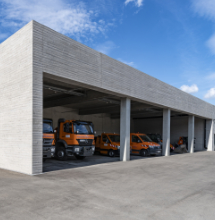 Beim Neubau der Feuerwehr und des Bauhofs in Metzingen entschieden sich dasch zürn + partner Architekten für monolithische Gebäudehüllen aus 60 Zentimeter starkem Liapor-Leichtbeton. Der Baustoff steht für Robustheit, Sicherheit und handwerkliches Können, und seine besondere Materialität verbindet die einzelnen Funktionsbereiche zu einem stimmigen, homogenen Gesamtensemble.