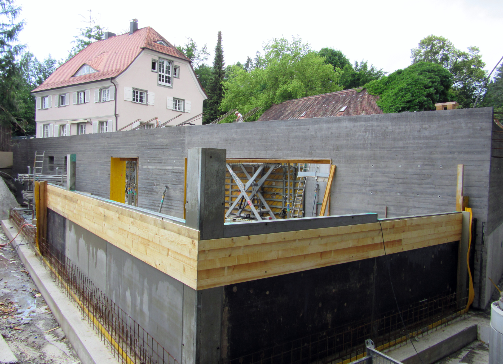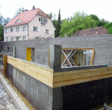 Das Sockelgeschoss des Anbaus am Hospiz Haus Brög in Lindau sollte in monolithischer Bauweise errichtet werden und musste aufgrund des vorherrschenden Hangwassers auch wasserresistent sein. Die Lösung bot ein Liapor-Leichtbeton mit besonders dichter Zementmatrix, dessen Wassereindringtiefe bei gerade einmal zehn Millimetern liegt.