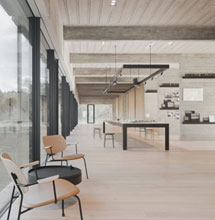 Das neue Besucherzentrum der Bauhaus Bundesschule Bernau präsentiert sich als eigenständiger, offener Baukörper, der zum Erkunden und Erleben des Weltkulturerbes einlädt. Im unmittelbaren Kontext des Denkmalensembles stehend, greift es die Bauhaus-Philosophie bewusst auf und transformiert sie in die Gegenwart. Dies gilt insbesondere für das weit auskragende Dach, dessen Umrandung aus Liapor-Leichtbeton besteht – genauso wie die beiden prägnanten Wandscheiben an den Stirnseiten des Besucherzentrums.