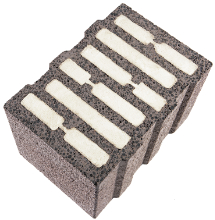 Material: 680 m² Mauerstein LiaporPlan SL-plus 36,5 (außen), 1.310 m² BetonPlan Schallschutzstein 11,5–24,5 (innen)
