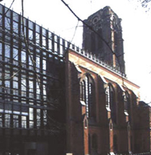 Gefügedichter Liapor-Leichtbeton LB 25 / 1,6 aus CEM III/A 42,5 R-NA und Flugasche, Liapor 6 (4/8 mm), Liapor Sand 1/4 rund und Natursand (0/2 mm): Fünf-geschossiger Um- und Erweiterungsbau einer denkmalgeschützten Kirche. Durch die Erweiterung wurde eine Bruttogeschossfläche von 2200 m2 für ein ökologisches Zentrum geschaffen. Der Leichtbeton dient mit seiner sandgestrahlten Oberfläche als optischer Blickfang für das Treppenhaus, den Aufzugschacht, die Brüstungen und Stützen. Ferner kam er für sämtliche Decken zum Einsatz. Für das Gesamtkonzept war ein wärmedämmender, ökologischer Baustoff wichtig.