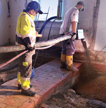 Beim Auerbacher Rathaus bot eine zementgebundene Liapor-Schüttung die Lösung, um ein historisches Tonnengewölbe in einen leichten, dennoch tragfähigen und stabilen Untergrund zu verwandeln. Insgesamt wurden rund 20 Kubikmeter einer zementgebundenen Liapor-Schüttung mit Liapor 4/8 und Zementleim auf die Gewölbedecke aufgebracht, und zwar keilförmig bis jeweils knapp unter die Gewölbescheitel in einer Stärke von bis zu 60 Zentimetern. Der Eintrag mittels X-1000-System sicherte dabei einen schnellen Baufortschritt und eine rasche Nutzbarkeit.