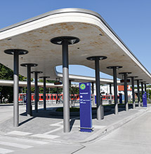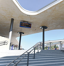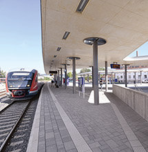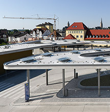 Filigran und schwerelos scheinen die neuen Dächer des Bahnhofs Korbach über den Bus- und Bahnanlagen zu schweben. Mit dem Leichtbeton ließ sich die Dachstützenkonstruktion als kragende Betonscheibe ohne zusätzliche Unterkonstruktion umsetzen. Alle Dachflächen bestehen aus insgesamt rund 900 m³ Liapor-Leichtbeton der Betongüte LC35/38 D1,6 mit ca. 700 m³ Liapor F 6,5 in weißer Sichtbetonoptik.