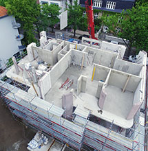 Die Weiße Villa im Berliner Westend kombiniert klassische Bauhaus-Stilelemente mit Wohnkomfort. Einen wesentlichen Beitrag dazu leistet die Gebäudehülle aus klimaPOR-Wandelementen. Während die Außenwände ab Erdgeschoss aus haufwerksporigem LAC2-Liapor-Leichtbeton in 36,5 Zentimetern Stärke bestehen, wurden die Innenwände mit gefügedichten Leichtbetonelementen vom Typ LC16/18 errichtet.
