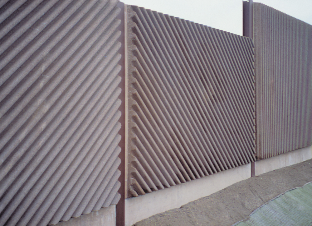 Dem Fachplaner eröffnen Liapor-Schallschutzplatten nahezu unbegrenzte gestalterische Möglichkeiten. Akustische Anforderungen werden über die Dicke der Rippe, Achsabstand der Rippen untereinander und Güte des haufwerksporigen Betons definiert. Doch auch ästhetische Merkmale dürfen nicht vernachlässigt werden. Bei dem von Liapor angebotenen System ist die lärmabgewandte Seite der Wand glatt abgerieben. Auf Wunsch kann sie jedoch mit einer optisch ansprechenden Lamellen-, Besenstrich- oder Harkenstruktur ausgestattet werden. Aber auch geschalte, frei gestaltete Flächen sind lieferbar. Ebenso möglich: das individuelle Einfärben beider Wandseiten. So passen sich Liapor-Lärmschutzwände der Umgebung perfekt an.
