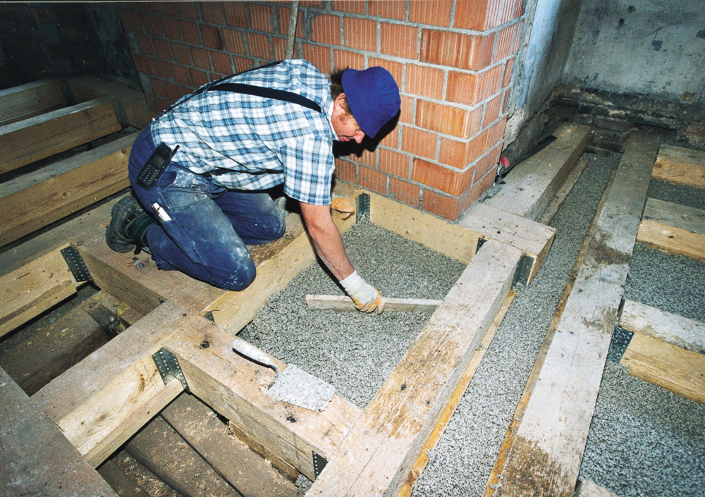 Die gebundene Ausgleichsschüttung findet Anwendung bei Um- und Ausbauten sowie beim Neubau: als gebundene Schüttungen auf Massivdecken, auf Holzbalkendecken (z. B. Überschüttung der Balkenlagen), Kellerbodenplatten und Gewölbedecken. Liapor Thermobeton bewirkt aber auch einen Gefälleausgleich unter Terrassen und auf Balkonen oder eine Gefälledämmung auf Flachdächern. Die gebundene Liapor-Schüttung eignet sich zudem als Hohlraumverfüllung mit aussteifender Wirkung und Dämmung im Holzrahmenbau sowie als Untergrund für Fliesen- oder Steinzeugbelag.