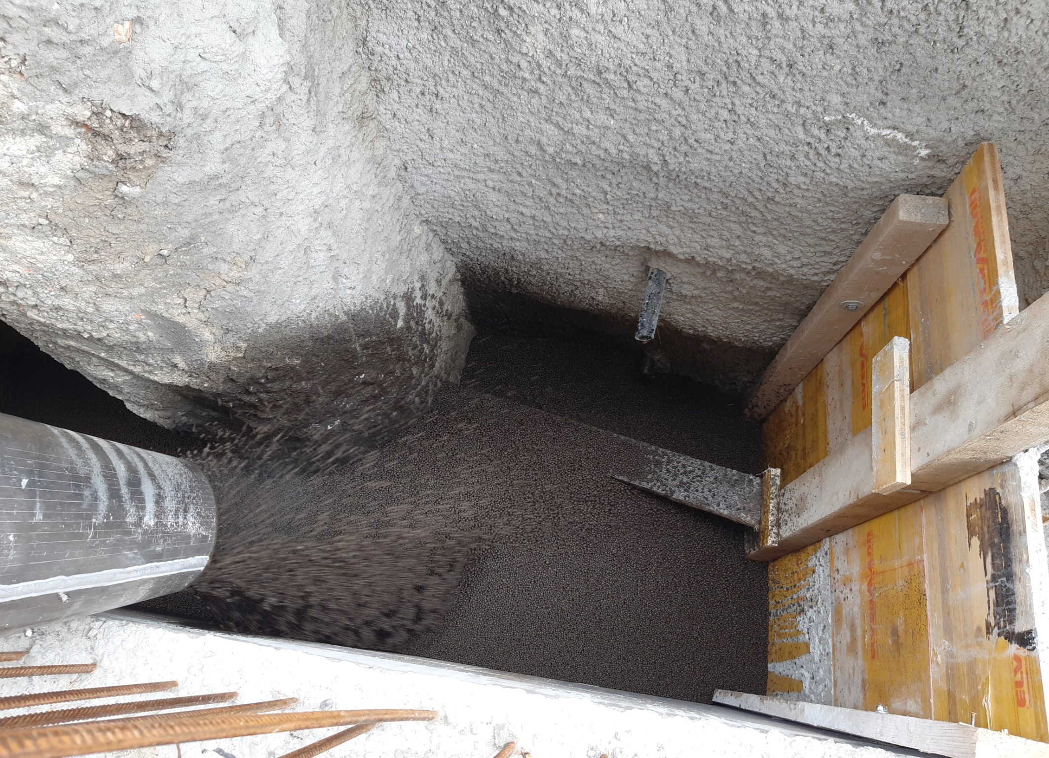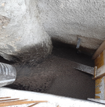 Der Eintrag des ungebundenen Liapor-Blähtongranulats erfolgte mittels Schlauchleitung direkt vom Silo-Lkw aus. Der Baustoff ließ sich so direkt in den zwischen zehn Zentimeter und 1,20 Meter breiten sowie bis zu acht Meter tiefen Spalt einblasen. Ein Zyklon am Schlauchende minimierte die Staubbildung. „Dank der Schlauchleitung konnte man das gesamte Material flexibel in den teils sehr engen Spalt einbringen und dort sämtliche Hohlräume bis in den letzten Winkel restlos verfüllen“, erzählt Ingo Wörner. Eine Nachverdichtung der Schüttung war dabei nicht erforderlich, denn das Liapor-Blähtongranulat ist nicht nur stabil und druckfest, sondern auch selbstverdichtend. So füllt ein Kubikmeter Liapor dauerhaft und zuverlässig einen Kubikmeter Hohlraum aus. Dazu kommt noch die feuchteregulierende Funktion des Liapor-Blähtons, der bei Bedarf Feuchtigkeit aufnehmen und wieder abgeben kann, ohne dass es zu Setzungen oder Quellungen kommt und dabei keine Abstriche in der Dämmwirkung macht.