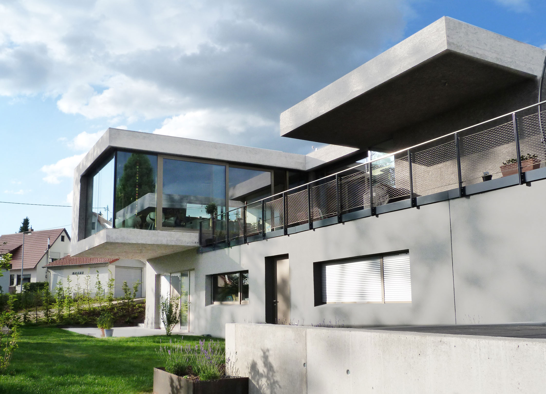 Im Zuge des Auszeichnungsverfahrens "Beispielhaftes Bauen" wurde Mitte November 2014 das Haus mr 13 in Riederich nordöstlich von Reutlingen prämiert. Für die Jury ausschlaggebend waren dabei die äußere Gestaltung, Maße und Proportionen des Baukörpers, aber auch die Raumzuordnung, die hier der jungen Familie des Bauherrn eine ganz besondere Kombination von Wohnen, Leben und Arbeiten ermöglicht. Und obwohl die Sichtbetonoptik auf die Preisrichter eher kühl wirkte, attestierten sie dem gesamten Haus eine positive Lebendigkeit und sehr gute Atmosphäre.