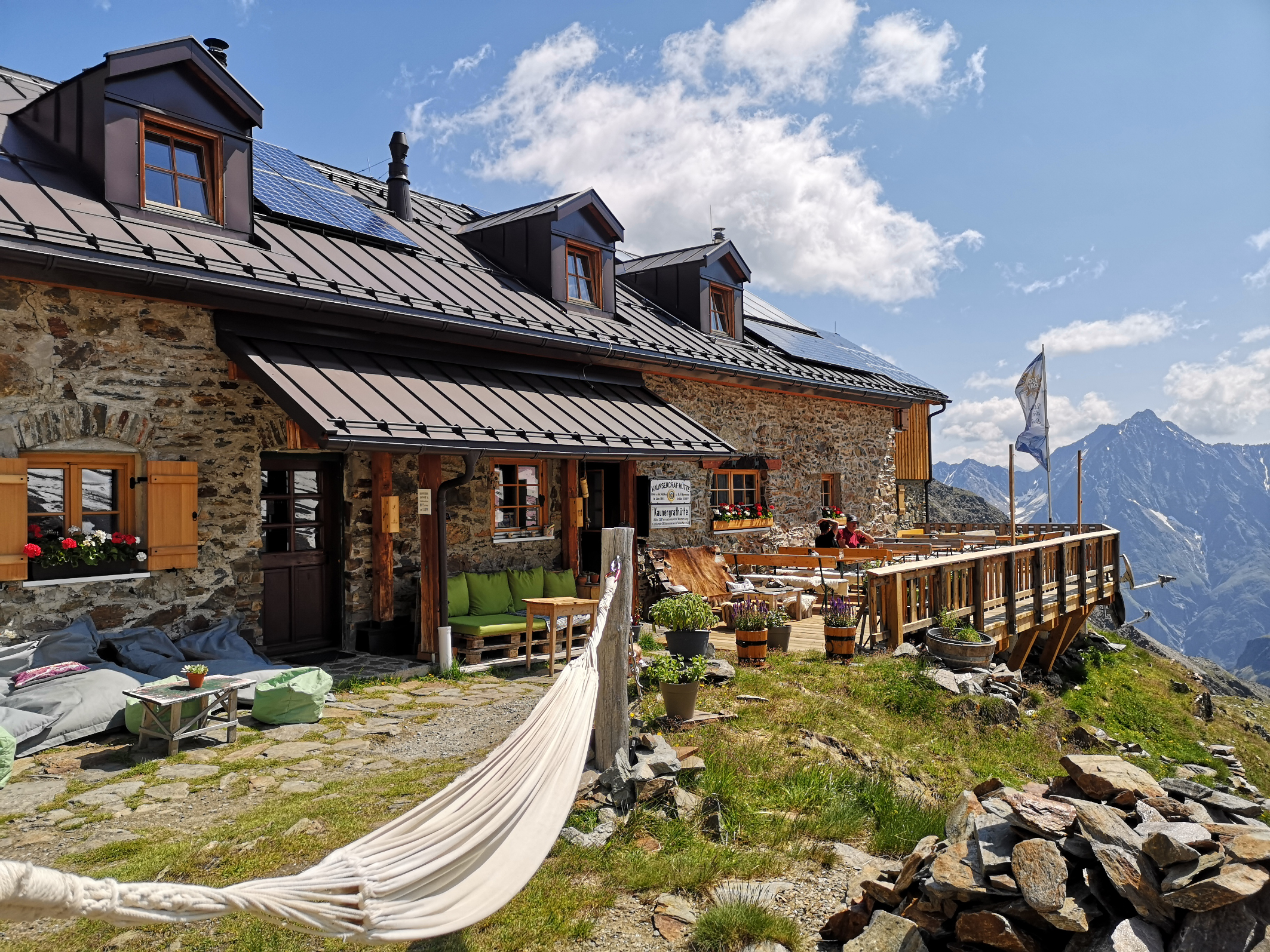 Die nur zu Fuß oder per Helikopter erreichbare Kaunergrathütte bietet neben Speisen und Getränken auch rund 60 Übernachtungsplätze.