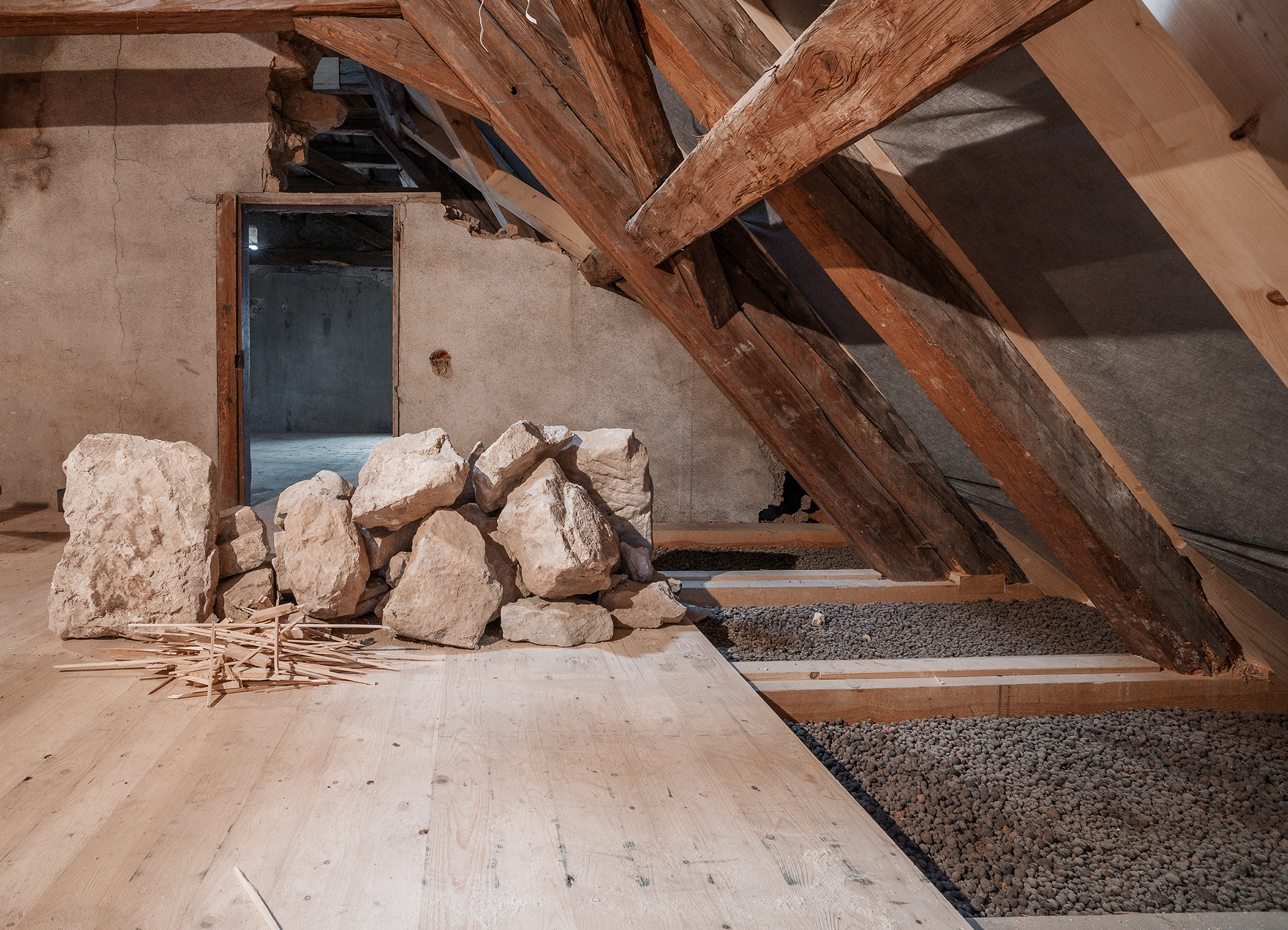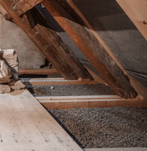 Im Dachgeschoss sorgen rund 70 m3 einer ungebundenen Liapor-Schüttung für die nötige Wärmedämmung.