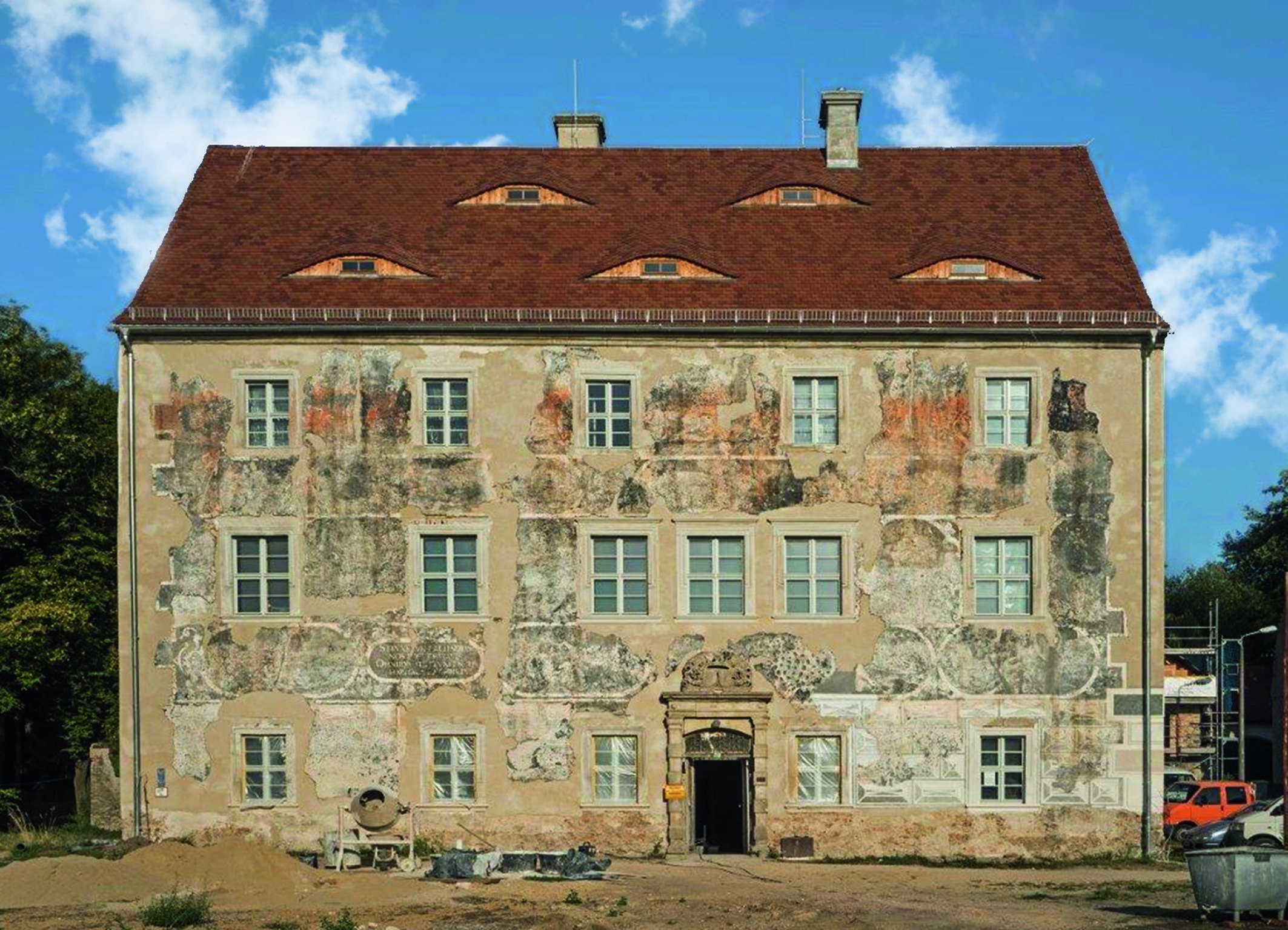Zwischen dem 13. und 14. Jahrhundert erbaut, präsentiert sich das Schloss Ober-Neundorf bei Görlitz als dreigeschossiges, rechteckiges Gebäude mit seitlich angesetztem Flügel auf der Parkseite. Kennzeichnend für den Bau der Renaissance sind die einheitliche Fenstergestaltung, das vorspringende Hauptportal und der hofseitige, mittlerweile großflächig freigelegte Sgraffitoputz. „Das Schloss stellt ein einzigartiges Zeugnis der Baukunst der Renaissance dar, und wir beschlossen, es zu retten“, erzählt Simone Kuhn, die mit ihrem Mann 2015 das Schloss erwarb. „Unsere Vision ist es, das Schlossensemble wieder mit Leben, Freude, Kultur, Begegnung und Besinnung zu erfüllen.“ Ein gewaltiges Anliegen, zumal das Schloss bereits längere Zeit leer stand und zunehmend verfiel. „Wir wussten natürlich, dass die Rettung des Schlosses eine schwerwiegende Entscheidung war, nahmen uns der Aufgabe aber an“, so Simone Kuhn, die dazu auch den Verein Schloss Ober-Neundorf gründete. Unterstützt wird das Projekt auch durch die Stiftung Denkmalschutz, das Land Sachsen sowie die Stadt Görlitz.