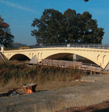 Bei der Sanierung der historischen Betonbogenbrücke galt es, ihre Tragfähigkeit zu ertüchtigen und auf die heutigen Belastungsanforderungen anzupassen.