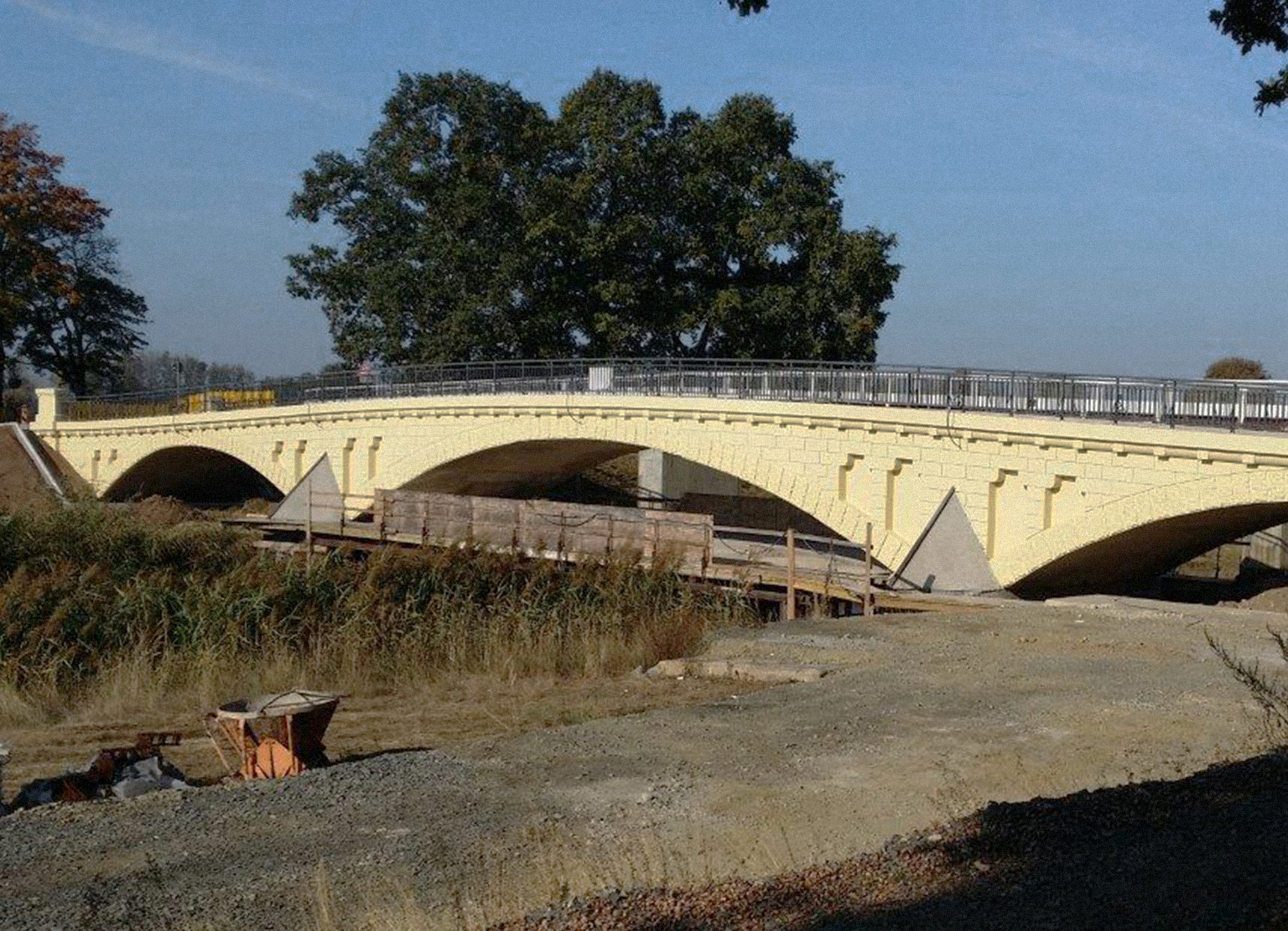 Die 1905 über die Schwarze Elster bei Neudeck errichtete Brücke ist eine der ältesten Betonbogenbrücken Deutschlands. Bei ihrer Sanierung wurden die Bögen mit rund 200 Kubikmeter Liapor-Leichtbeton verfüllt. Der Baustoff ist nicht nur besonders leicht und tragfähig, sondern passt auch von der Materialität her perfekt zum denkmalgeschützten Bauwerk.