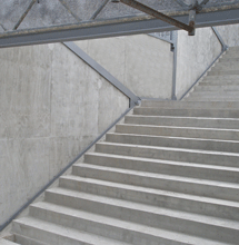 Die Stahlträgerkonstruktion der Abgänge und des Überbaus wurde mit knapp 200 Leichtbeton-Elementen ausgefacht.
