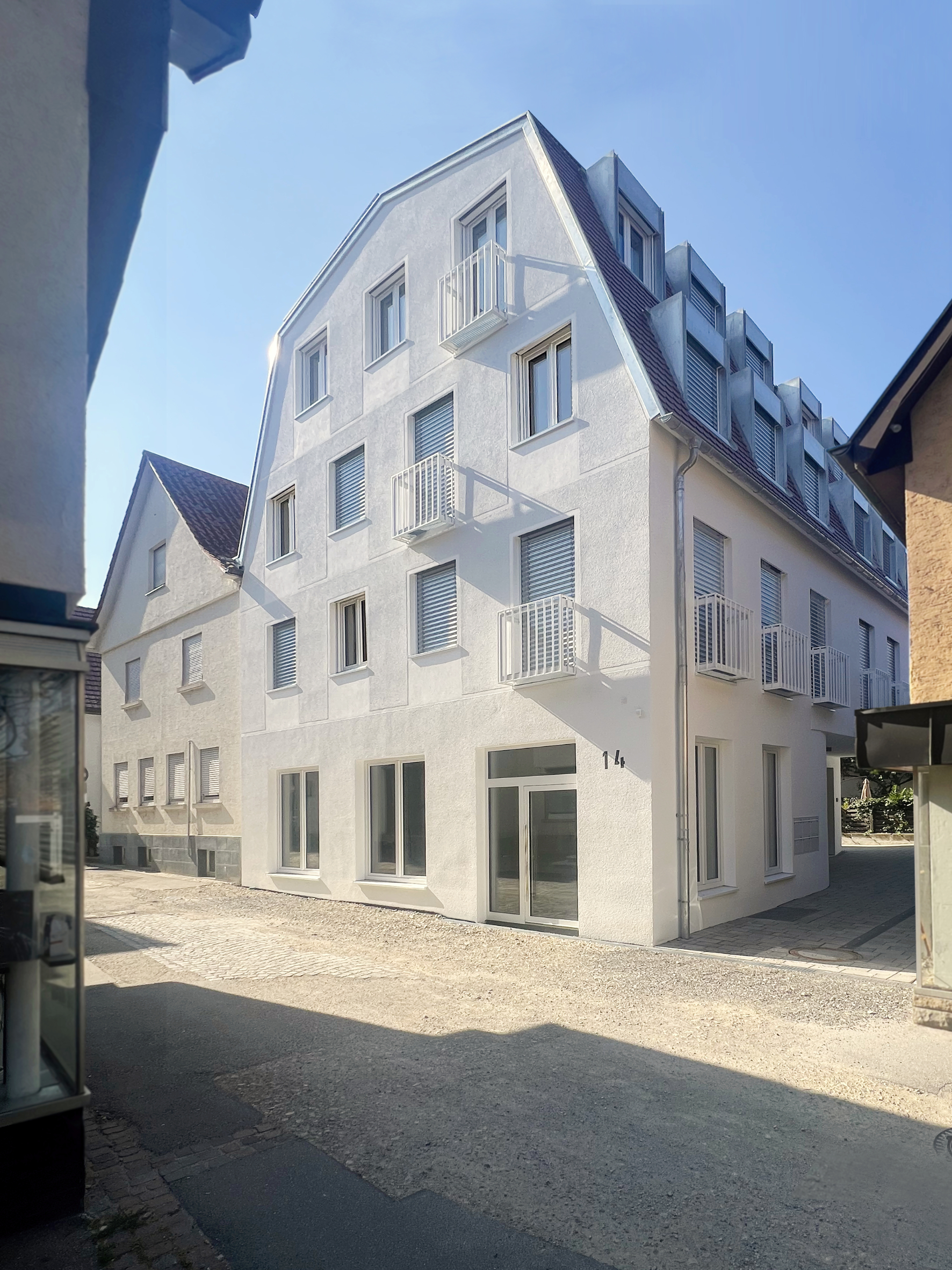 „Klar ist der Planungsaufwand im Vorfeld höher, aber der zahlt sich dann später im zügigen Bauablauf wieder aus“, so das Fazit von Prof. Michael Meyer. „Entscheidend war aber auch die hohe Qualität bei der Montage der Elemente, die hier auch durch die Kastell GmbH erfolgte.“ Im September 2020 war das neue Haus bezugsfertig. Es umfasst wie das ursprüngliche Gebäude drei Vollgeschosse und ein ausgebautes Dachgeschoss. Die Form und Größe des Bestandsbaus wurde jedoch in neue Dimensionen überführt. Insgesamt bietet das Wohn- und Geschäftshaus auf 635 Quadratmetern Platz für insgesamt fünf Wohneinheiten und eine Gewerbeeinheit im Erdgeschoss.