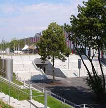 Das Areal vor dem Carl Benz Center wurde als durchgängig intensive Dachbegrünung über der Tiefgarage gestaltet.