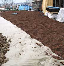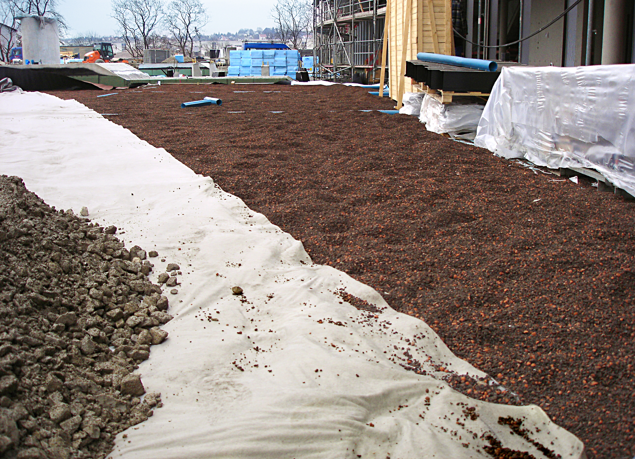 Ein Schutz-Vlies trennt die im Mittel rund 15 Zentimeter mächtige Liadrain-Schicht von der darüberliegenden Substratschicht.