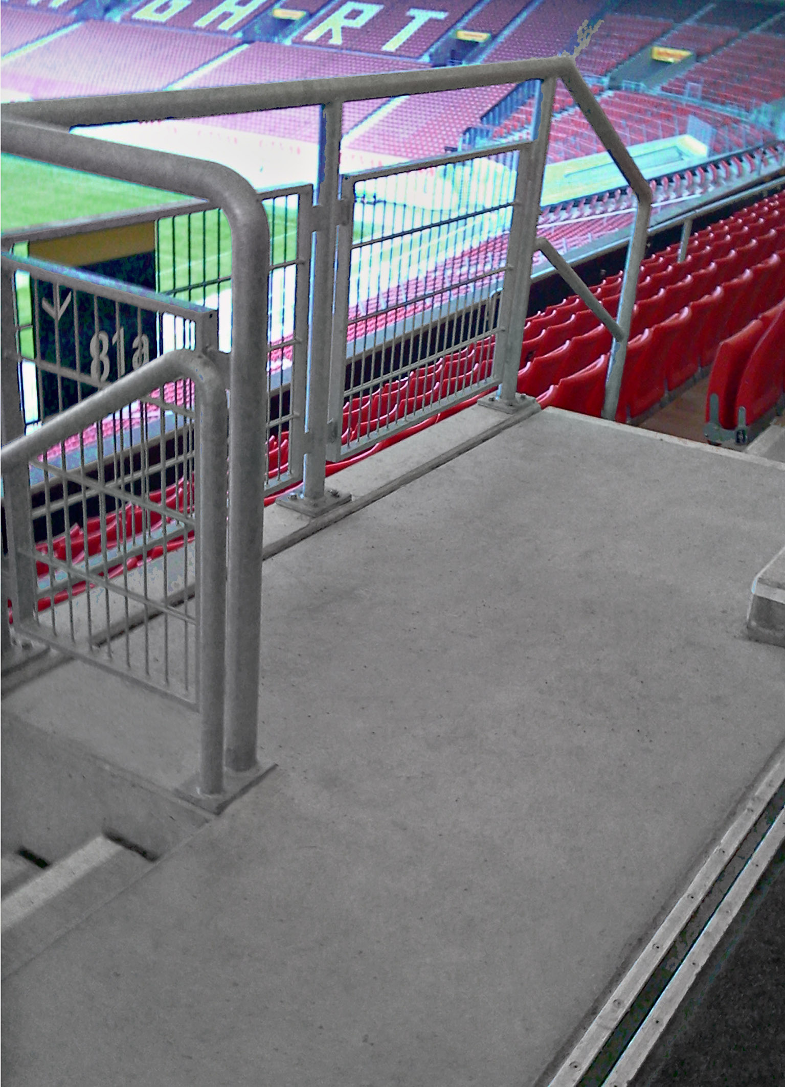 Die Laufstufen und Treppenelemente aus Liapor-Leichtbeton sorgen für den ungehinderten Zugang zu den neuen Plätzen im Bereich der Untertürkheimer Fan-Tribüne.