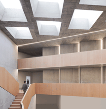 Das offen und licht wirkende Innere des Rathauses ist für Begegnung und Kommunikation konzipiert und lädt ein zum Erkunden und Entdecken.
