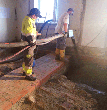 Das historische Tonnengewölbe wurde mit rund 20 Kubikmetern einer zementgebundenen Liapor-Schüttung aufgefüllt.