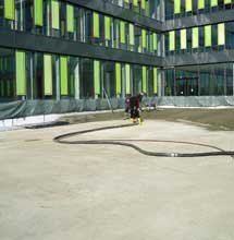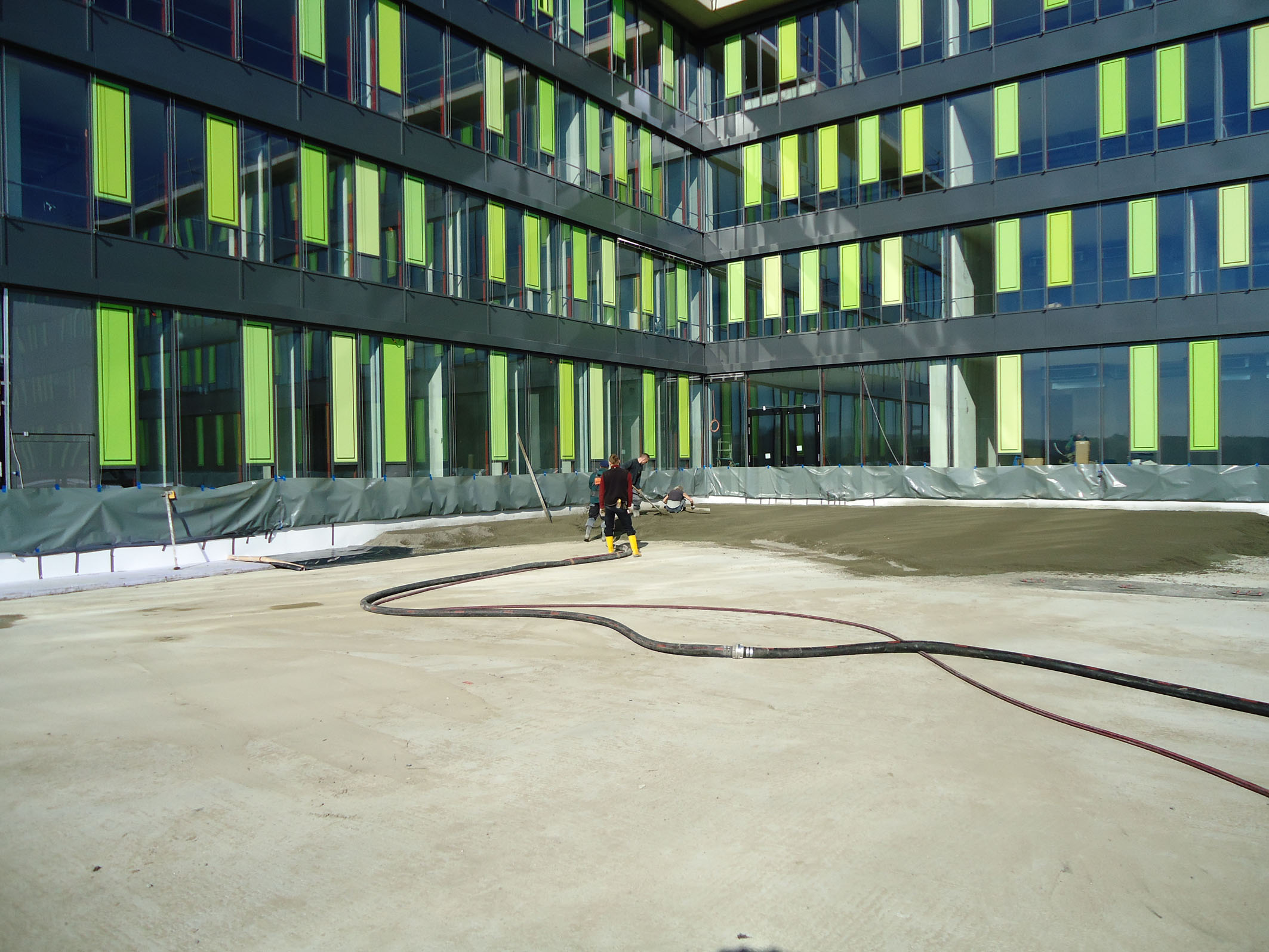 Über dem Dach der Tiefgarage befindet sich der neue Innenhof der FH Würzburg, dessen Grundlage die zementgebundene Liapor-Schüttung bildet.