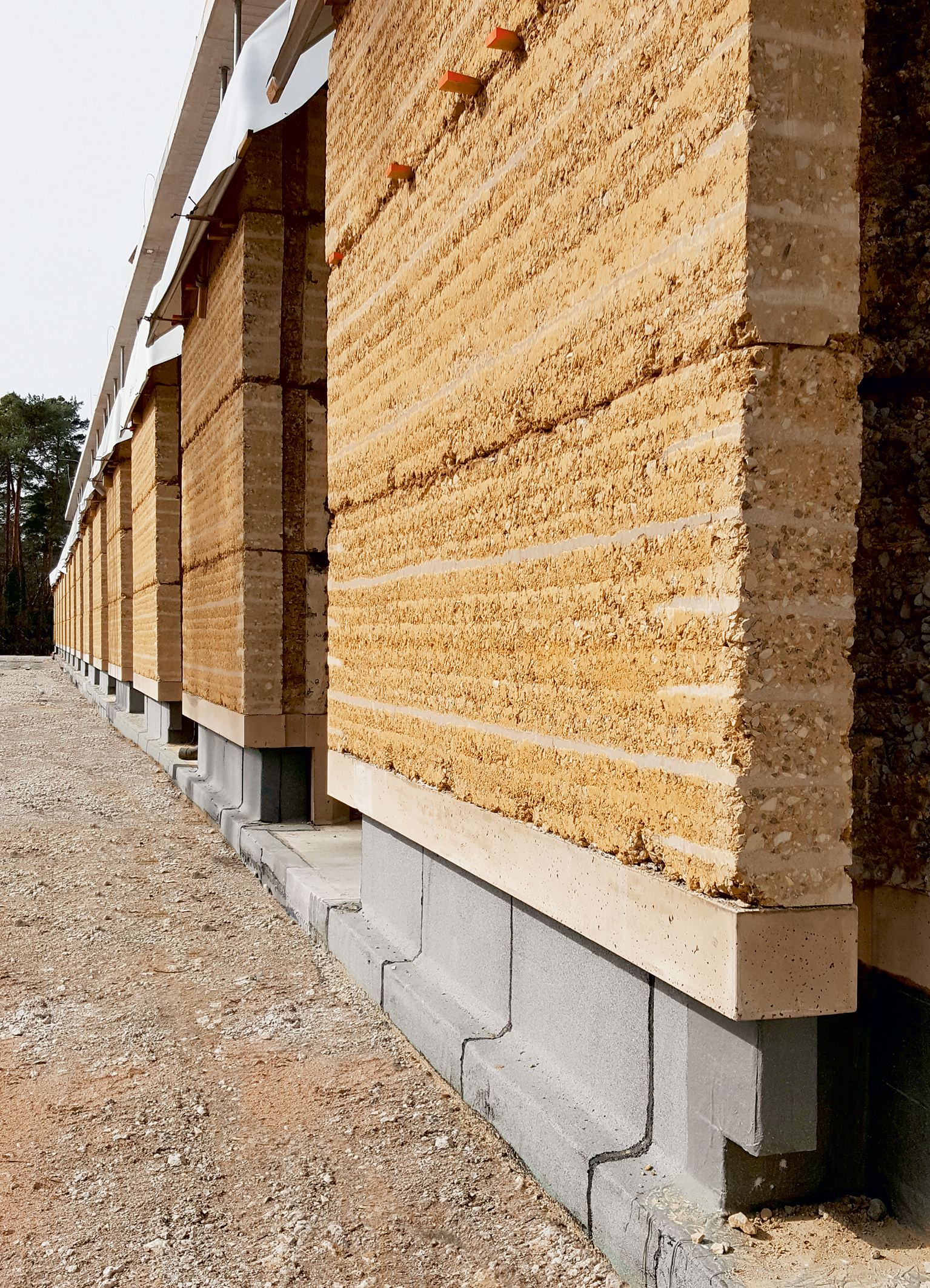 Jedes Lehmsegment steht auf einem Liapor-Leichtbetonsockel, der auch Wärmebrücken verhindert.