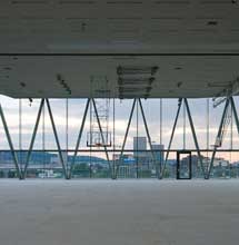 Das Schulhaus Leutschenbach im Norden von Zürich ist ein innovativer Gebäudekubus aus Stahl, Beton und Glas. Architekt Christian Kerez realisierte hier ein ungewöhnliches Raumkonzept aus vertikal angeordneten Räumen, gleichzeitig verleiht die sichtbare Stahlfachwerkkonstruktion dem preisgekrönten Gebäude eine besondere Leichtigkeit. Die spezielle Gebäudestatik erforderte dabei den Einsatz eines Liapor-Leichtbetons, der nicht nur alle Vorgaben hinsichtlich Gewicht und Tragfähigkeit optimal erfüllt, sondern als Sichtbeton auch eine wichtige ästhetische Funktion übernimmt.