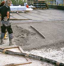 Die Lösung für diese Anforderungen bot eine zementgebundene Liapor-Schüttung, die hier als durchgängige Schicht mit Mächtigkeiten zwischen drei und 30 Zentimetern aufgebracht wurde. Insgesamt kamen rund 240 Kubikmeter zementgebundene Liapor-Schüttung zum Einsatz. Den Eintrag übernahm die ihb product GmbH aus Schleusingen. Die Schüttung besteht aus Liapor-Blähton und Zementmilch und zeichnet sich durch ihr geringes Gewicht, ihre hohe Stabilität und die individuell anpassbaren Schüttungshöhen aus. Daneben sorgt ihr einfacher, schneller Auftrag für effizientes und wirtschaftliches Arbeiten. Auch die unkomplizierte Ausformung der geforderten Gefällestufen durch einfaches Aufschütten und Abziehen machte die zementgebundene Liapor-Schüttung hier zur idealen Unterdachkonstruktion.