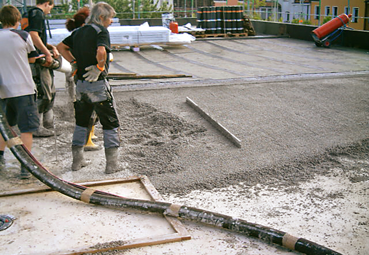 Mit der aufgebrachten zementgebundenen Liapor-Schüttung ließen sich die großen Niveauunterschiede auf dem Dach optimal realisieren.
