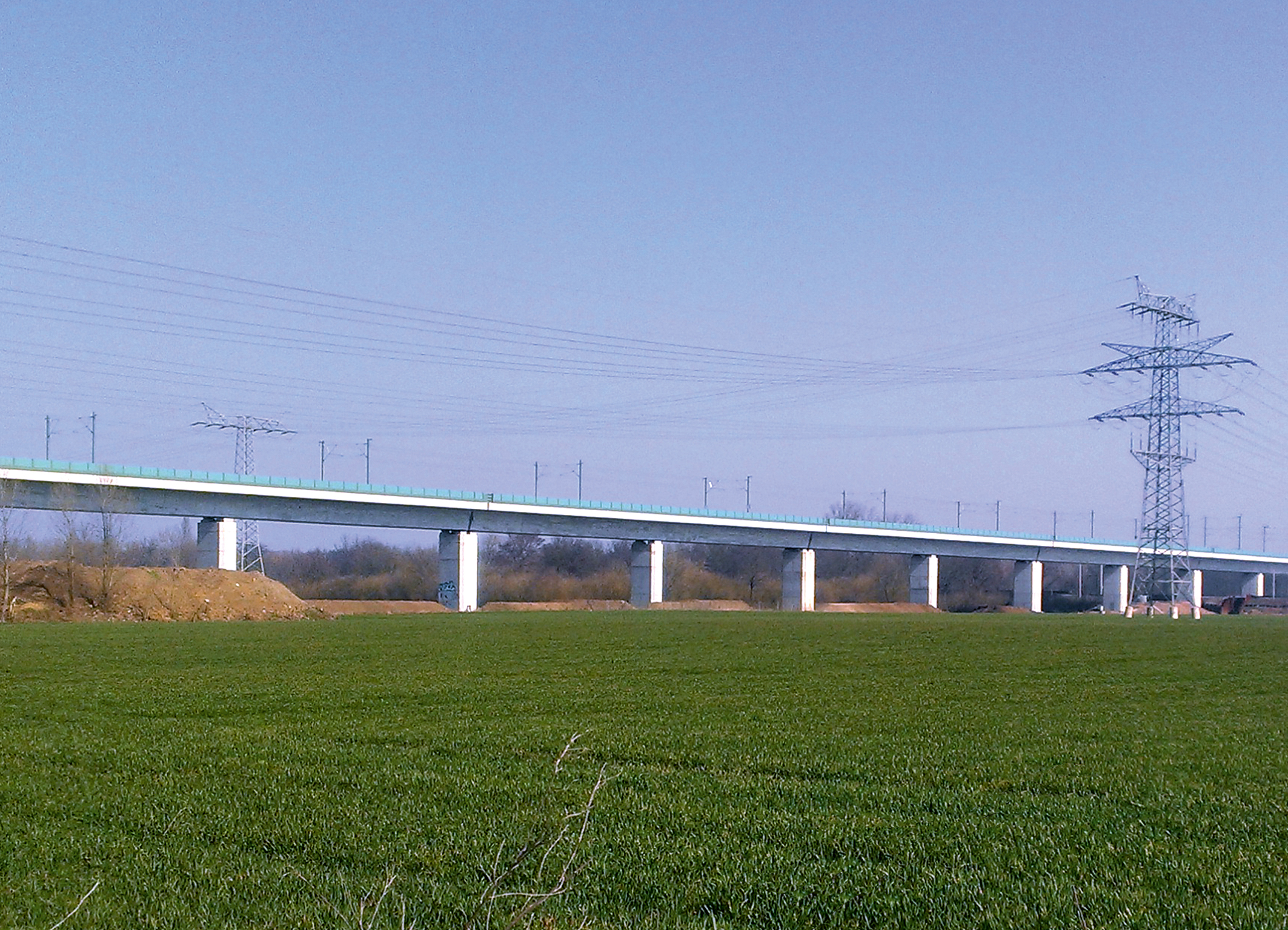 Die ICE-Neubaustrecke zwischen Erfurt und Leipzig/Halle ist das Kernstück der neuen Hochgeschwindigkeitstrasse zwischen München und Berlin. Besonderes Merkmal der Verbindung sind die zahlreichen Brücken, darunter die Saale-Elster-Talbrücke, die Saubachtalbrücke, die Unstruttalbrücke und die Stöbnitztalbrücke. Und die Spannweiten sind beachtlich: So ist allein die Saale-Elster-Talbrücke mit 6.465 Metern Länge nicht nur das längste Brückenbauwerk Deutschlands, sondern auch die längste Fernbahnbrücke in ganz Europa.