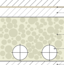 Den oberen Abschluss der Auffüllung bilden Pflasterziegel. Darunter befinden sich ein Zementestrich, eine Klebeschicht und die Liapor-Schüttung.